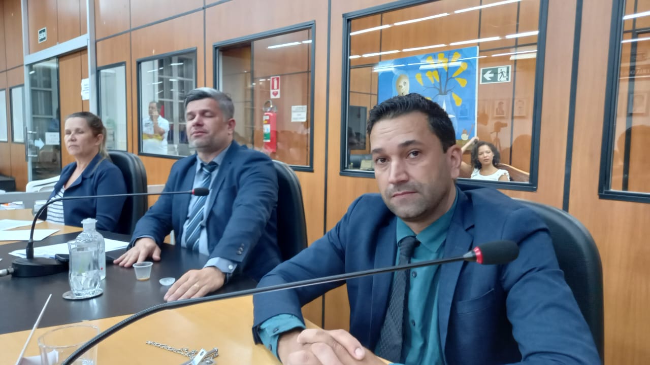 Vereador Lacerda do Aki (primeiro plano) e vereador e vereadora Pastor Júnior e Valdeníria. Crédito: CMC