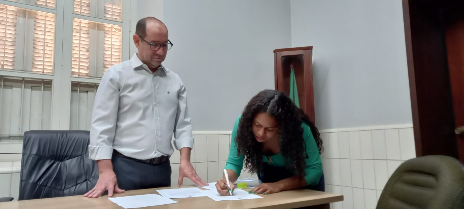 Presidente da Câmara Luiz Landim empossa nova servidora. Foto: CMC